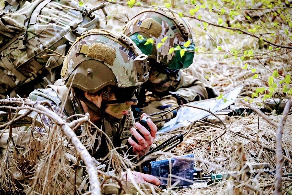 U.S. Army Captain Charlotte “Charley” Falletta, commander of Anvil Troop, 1st Squadron, 91st Cavalry Regiment, 173rd Airborne Brigade conducts radio checks while executing a platoon attack exercise near Camp Beverlo, Belgium on April 13, 2023. Faletta’s journey as one of the first to integrate combat units is featured in THE FIGHT TO FIGHT documentary feature film.