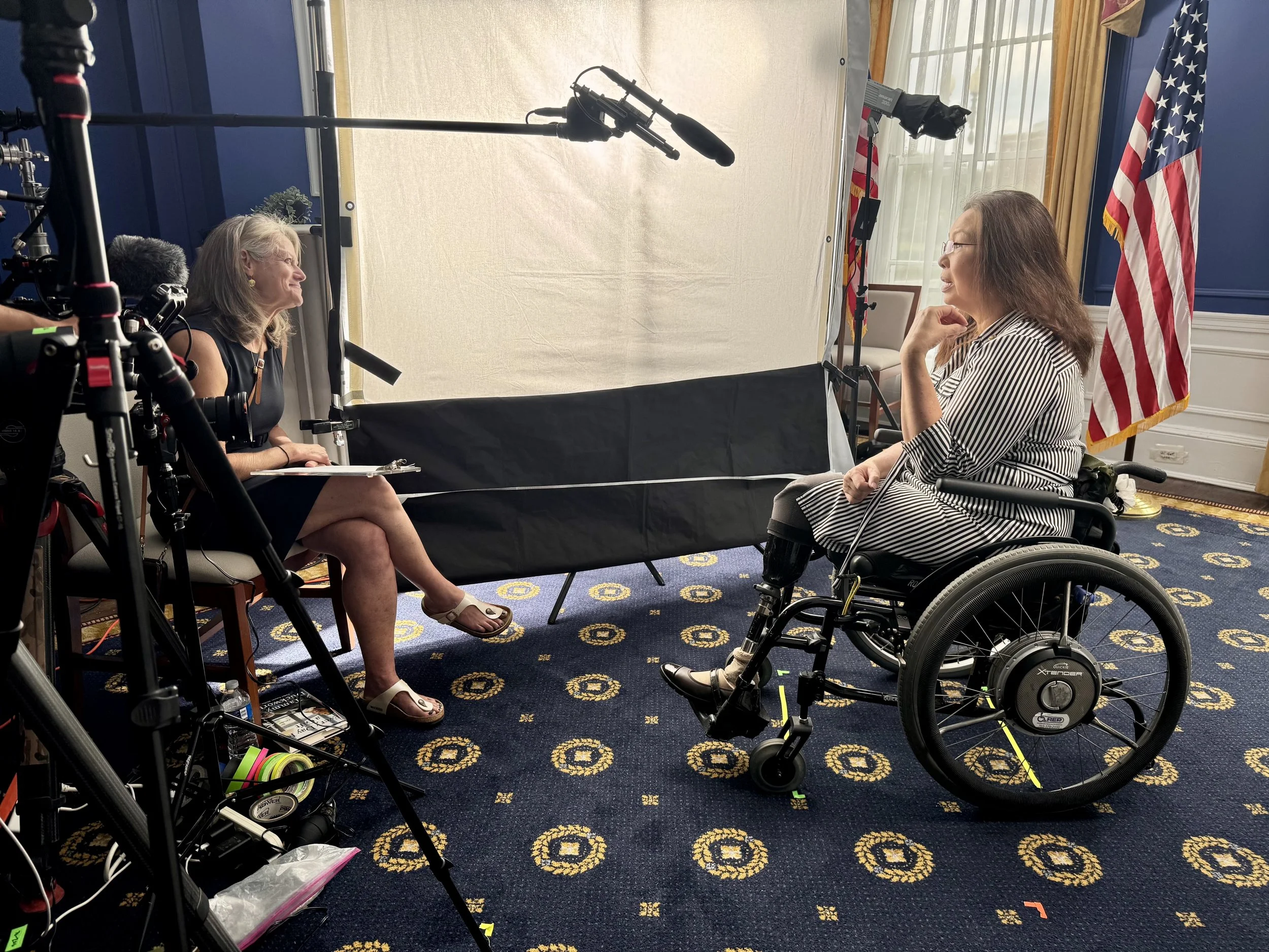 Director of Photography Mark Romanov had the scene dialed in. I had my carefully crafted questions rehearsed and ready. Then, Senator Tammy Duckworth, a decorated Army veteran who lost her legs in 2004 when the Blackhawk helicopter she was piloting was shot down by Iraqi insurgents, entered the room and confidently rolled her wheelchair to marks taped on the carpet.