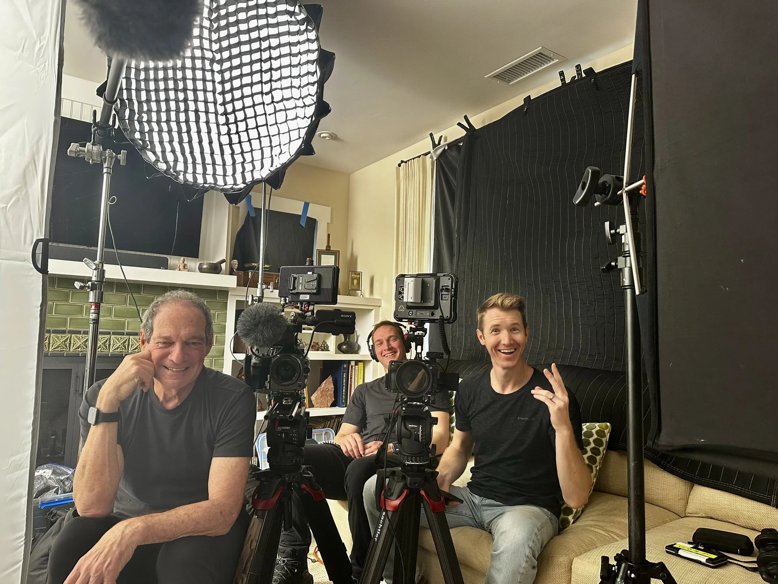 Turning the camera around on the crew at the end of a long production schedule. From left: Richard Hutton, producer, Mark Romanov, editor/director of photography, and Maxwell Frank, second camera. Their creativity and hard work have made a deep impact on the film.
